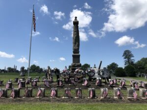 Harris Ferry President Lemon presented the Middletown Cemetery Association with a Flag Certificate for the incredible and patriotic display of the colors at that Middletown Cemetery. The American Flag hangs over the military display at the cemetery, where a multitude of Civil War veterans are interred. This same display is accompanied by two pieces of artillery, an older style cannonball cannon and a later style flak gun. Three patriotic wreaths are placed in front of the large monument for these and all veterans buried at the cemetery.