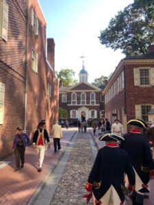 Following the Patriot Grave Marking ceremony of Charles Thomson, the 250th Anniversary celebration officially kicked off in historic Philadelphia at Carpenters’ Hall, the meeting location of the First Continental Congress in 1774. At this meeting, patriots like Patrick Henry, John Jay, Charles Thomson, George Washington, and John and Samuel Adams, among others, from all thirteen colonies except Georgia met in secret to establish the Articles of Association. They refuted the Intolerable Acts, called for a boycott of British goods, and set in plan an embargo of exports. These men, while committing high treason with such a meeting, were laying further groundwork of a revolution.