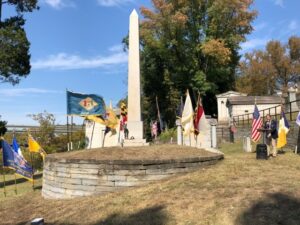 Compatriot Jacob Lemon attended both the tour and grave marking ceremony and has said they were very enjoyable and honorable experiences. The number of SAR Colorguardsmen in attendance at the cemetery was limited, so the Color Guard Commander offered Jacob the opportunity to present the Pennsylvania flag during the ceremony.