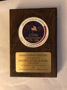 In 2025, President Lemon, 1st Vice President Lute, 2nd Vice President John Boyarski, Secretary Coburn, and compatriot Milliron met with HHAA President Jerry Dougherty, a large number of club members, and about two dozen descendants of Patriot Buck to place an SAR Patriot Grave Marker as well as a Revolutionary War marker. The ceremony went exceptionally well, with the Buck Family having expressed much satisfaction and joy in knowing their ancestor was honored in such a patriotic and respectful manner. The HHAA was presented with two awards: a Certificate of Appreciation for being a large donor to HFSAR’s 2024 Wreaths Across America Campaign and an SAR 250 plaque for the preservation of Buck Cemetery. Eagle Scout Jaden Morgans was presented with the SAR Bronze Eagle Scout Award for constructing the new white vinyl fence that now surrounds and protects the cemetery.