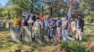 On September 20th, 2025, Compatriots from Harris Ferry as well as Washingtonburg gathered at Dauphin Cemetery to honor the legacy of Patriot Timothy Green. With phenomenal weather to accompany the day, a dozen men gathered together on land with many Patriots interred nearby. Harris Ferry Chapter President Lemon organized the event, led the Color Guard, and provided the day’s prayers. Washingtonburg members also assisted with the Color Guard for the ceremony. Alongside Col. Green’s tombstone is his original Revolutionary War grave marker and now his new SAR Patriot Grave Marker. This marker was funded by a grant from Pennsylvania Skill.