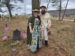 Harrisburg Chapter, NSDAR as well as Harris Ferry Chapter SAR, held a successful ceremony at Stroh’s Cemetery honoring two Revolutionary War Patriots George Stroh and Christian Stucky.  The land, once owned by George Stroh and his descendants, is now property of the Commonwealth of PA.  To conduct the ceremony, the cemetery was in a bit of disarray.  The Department of Conservation and Natural Resources stepped in and had a team reset and repair a multitude of stones, with more to come.